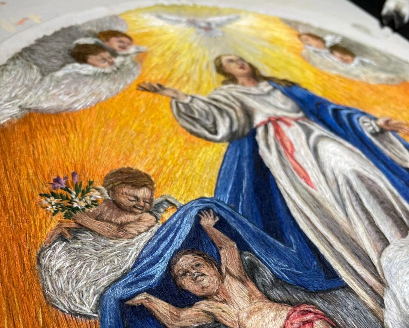 En el Taller de Bordado en Oro y Sedas Nuestra Señora de los Ángeles en Sevilla, nos especializamos en la creación de prendas bordadas en oro fino y sedas naturales para todo tipo de imágenes sagradas y ornamentos. Ofrecemos una variedad de servicios que incluyen el bordado tradicional sevillano y la confección de artículos hechos a mano, dedicados especialmente al arte sacro nacional y al bordado de Semana Santa. Cada pieza que elaboramos refleja nuestra pasión por la tradición y el arte, sumado a nuestro toque personal, garantizando calidad y autenticidad en cada trabajo.