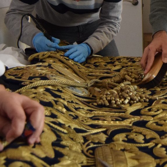 Aquí, el dibujo, el oro y las sedas se entrelazan para crear piezas únicas: sayas, mantos, estandartes y todo cuanto nuestras manos puedan convertir en una obra única. Cada diseño, nace con la misma pasión que siglos atrás dio forma a los bordados que hoy admiramos en museos, procesiones y todas y cada una de nuestras imágenes.