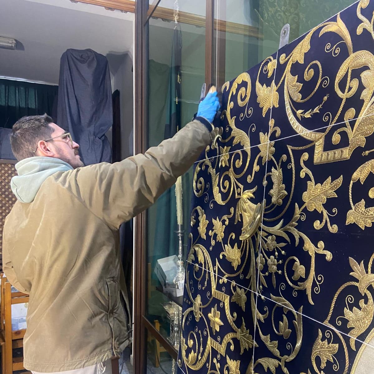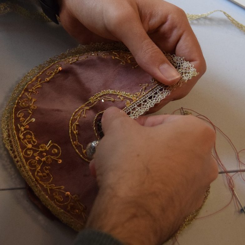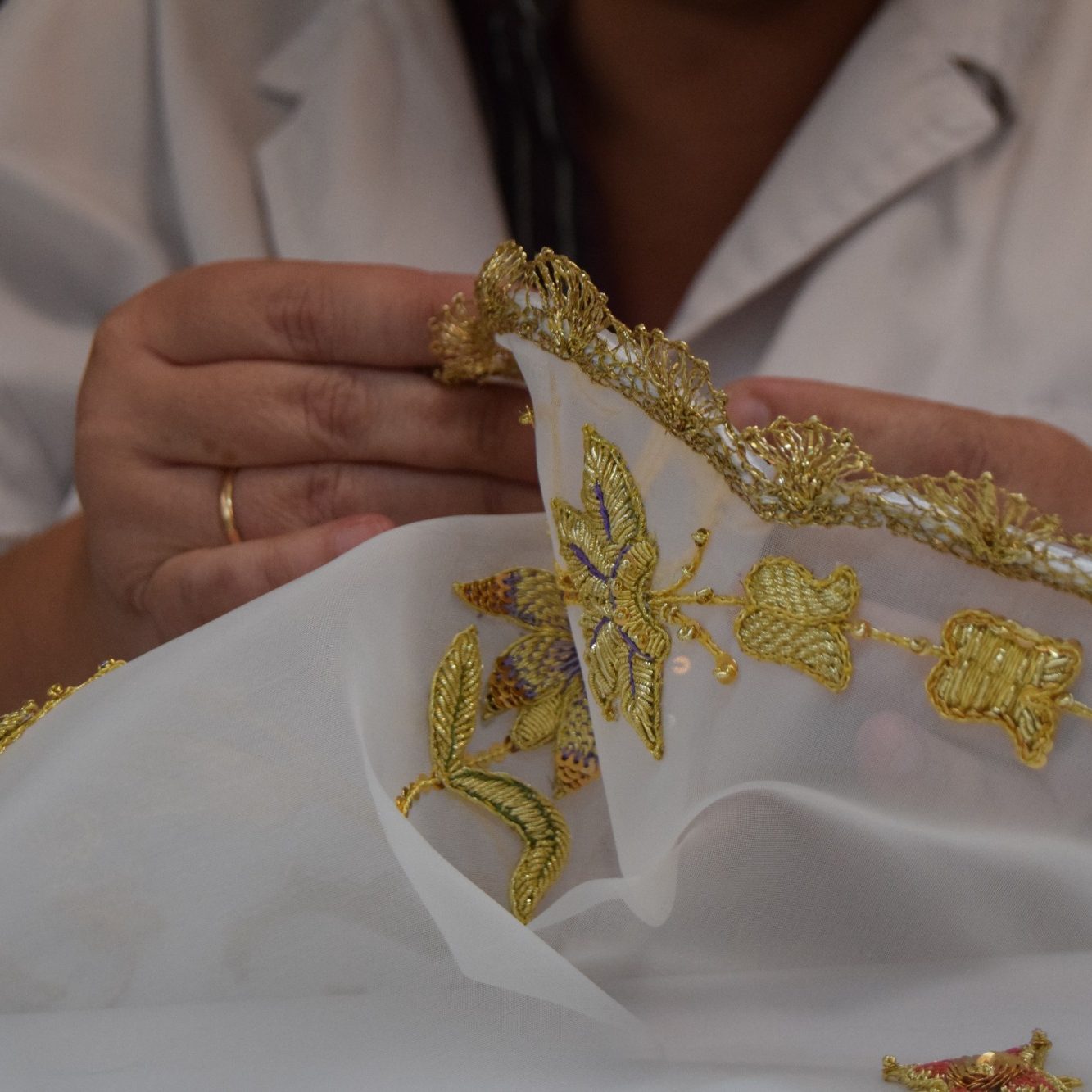 Cada puntada es un susurro del pasado, cada hilo de oro es un destello de devoción, y cada pieza que sale de nuestro taller es el resultado de horas de dedicación, arte y amor por nuestras tradiciones.