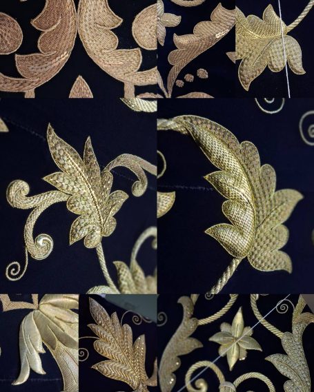 Recorte, consolidación y reintegración del bordado de diversas piezas de un proyecto, así como su traslado a un nuevo soporte que contribuya a otorgar una vida útil renovada a la prenda, así como la integración de nuevas piezas para su posible variación de diseño sobre esta, aportando un enriquecimiento artístico a la obra.
