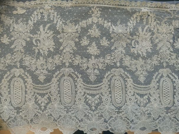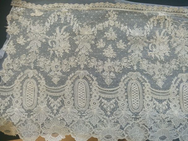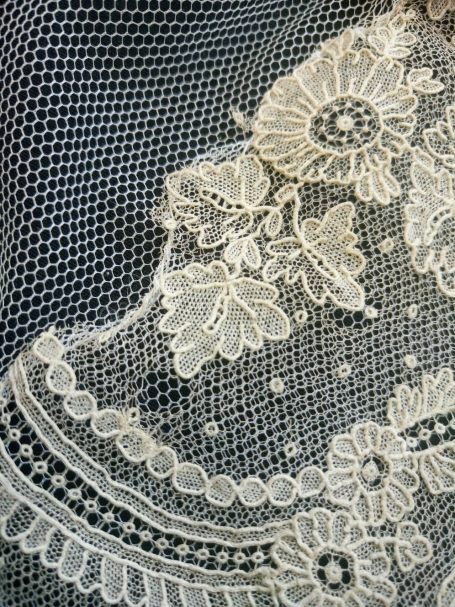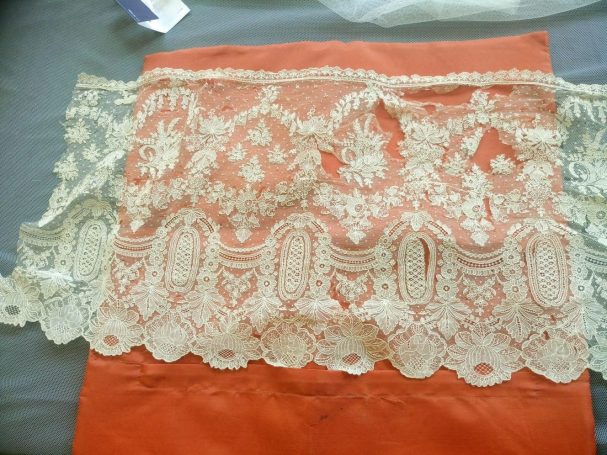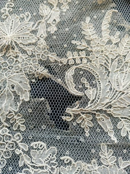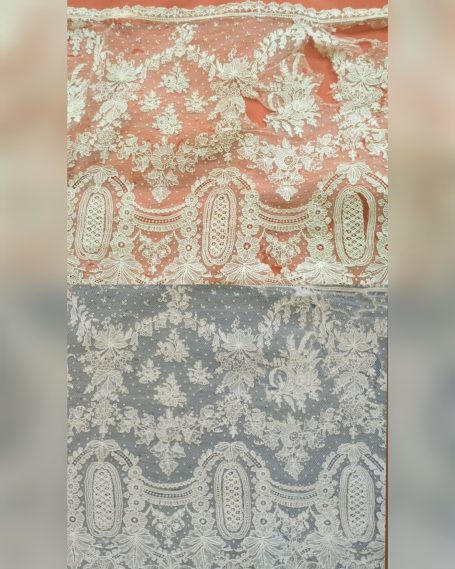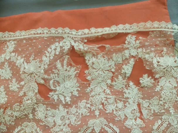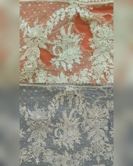 Hoy queremos compartir con todos vosotros un trabajo muy especial que nos llegó al taller de Nuestra Señora de los Ángeles: un delicado encaje de Bruselas datado del siglo XIX. Una pieza única hecha a mano con la técnica de aplicación sobre tul que se caracteriza por sus motivos florales llenos de vida, uvas, lazos y guirnaldas, que se encontraba en un estado delicado y que gracias a su intervención lucirá de nuevo como merece.